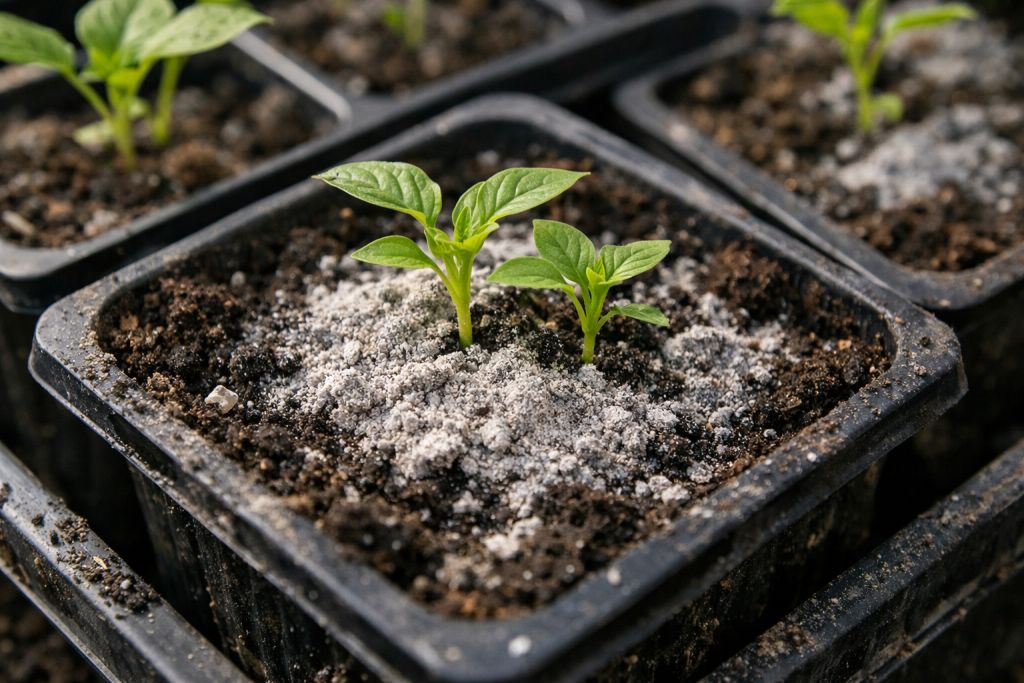 | Dodatak supstratu | Miješanje praha sa zemljom prije sadnje | U fazi pripreme tla za sjetvu sjemena |