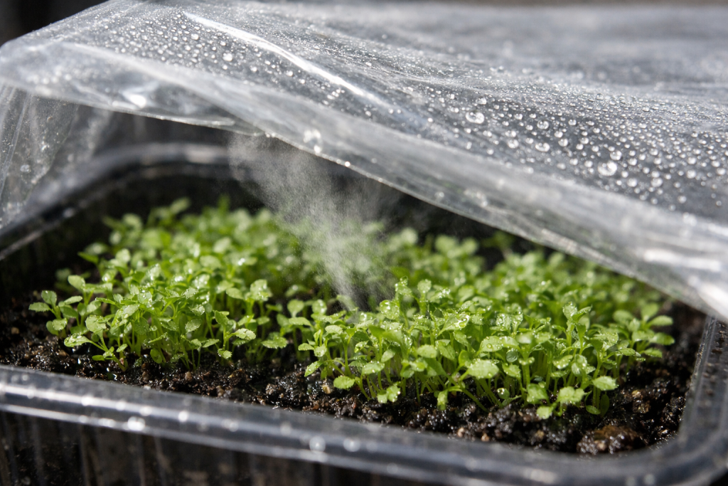 Pokrijte posudu prozirnim poklopcem s malim rupama za prirodnu ventilaciju.
