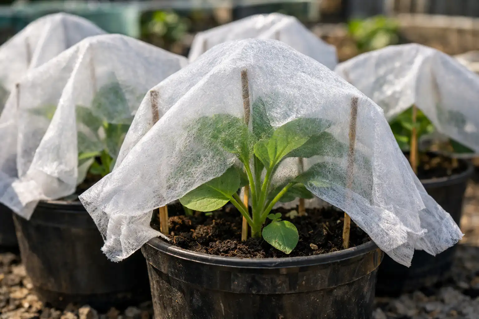 Ako se očekuju blagi i kratkotrajni mrazevi, tikvice se mogu spasiti netkanim materijalom.