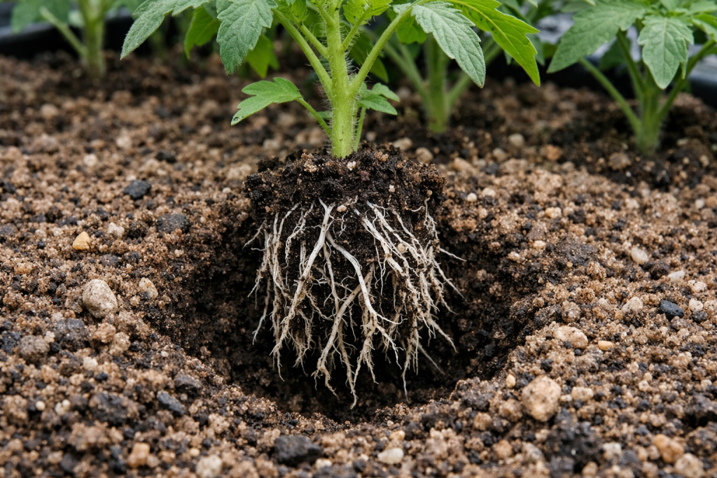 Tajna nijansa leži u umjetnom stresu: jednom u praznom tlu, korijenje rajčice prisiljeno je aktivno rasti u širinu u potrazi za hranom, što čini snažan temelj za buduću žetvu.