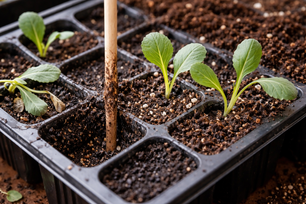Kada lišće počne gubiti turgor i padati, prva instinktivna pomisao je da obilno zalijete tlo. Ali u velikoj većini slučajeva sadnice umiru zbog crne noge – podmukla gljivična bolest koja napada bazu stabljike upravo kada ima viška vlage. Korijenje se jednostavno uguši u mokrom supstratu i prestane pumpati hranjive tvari u nadzemni dio.