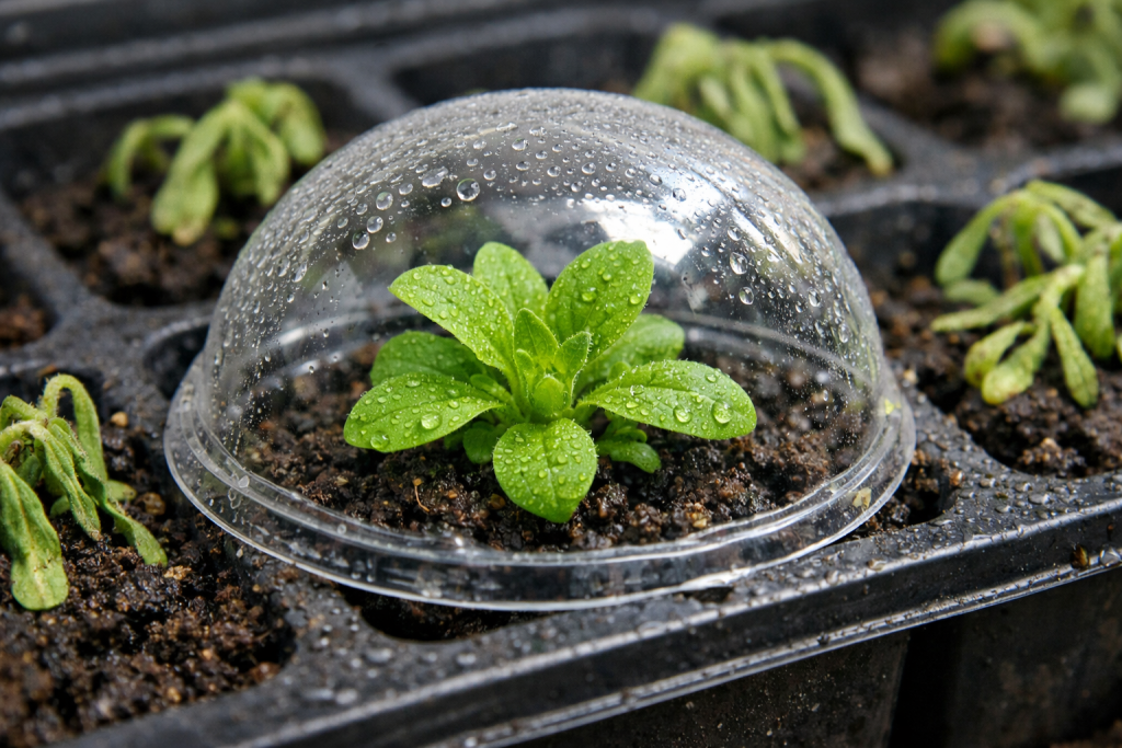 U prvim danima sadnice zahtijevaju strogu zaštitu od izravnog sunca kako bi se spriječio kritičan gubitak vlage i opekline.