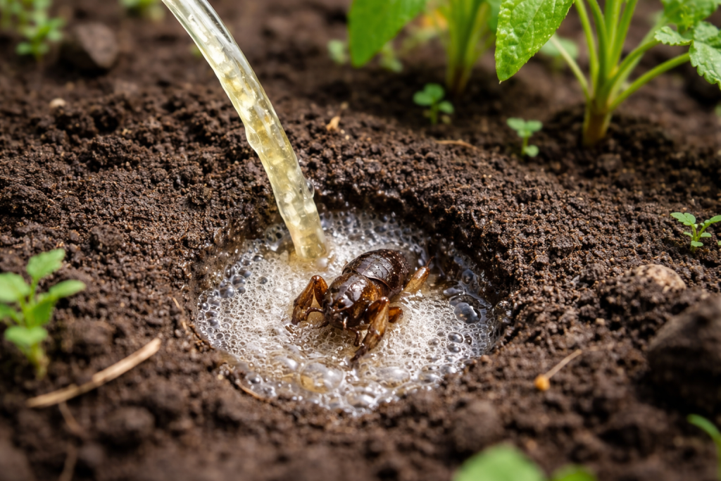 Ulijte tekućinu izravno u tok dok se štetnik ne pojavi na površini.