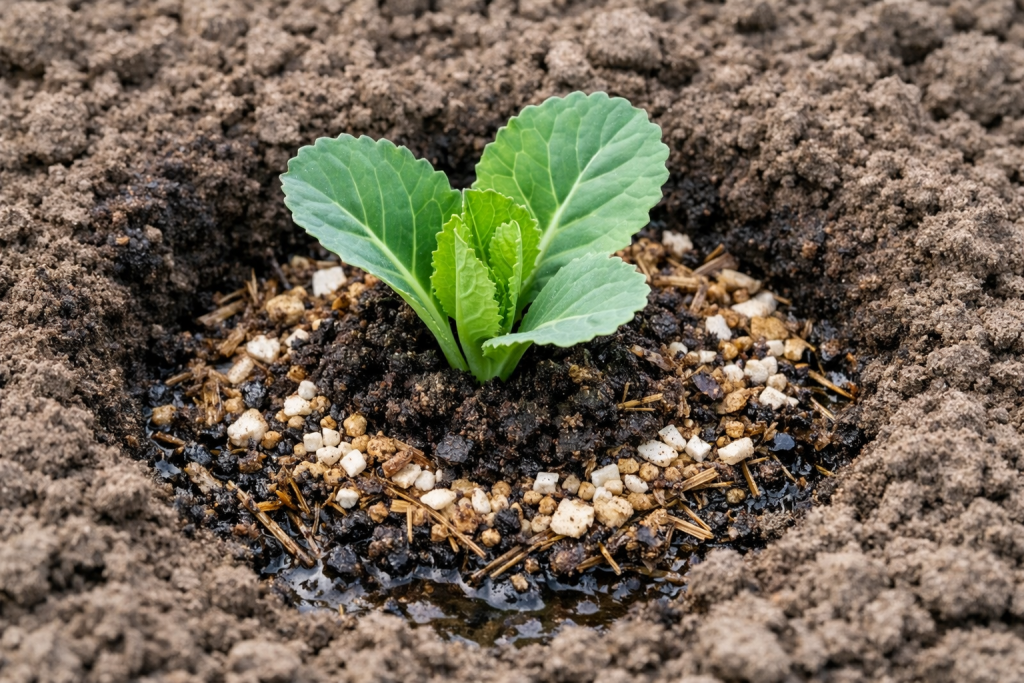 Tlo za našu kulturu mora biti hranjivo i sposobno zadržati vlagu. Sadnice kupusa vrlo zahtjevna za strukturu tla. Gredice uvijek pripremam unaprijed kako bi tlo imalo vremena da se slegne i strukturira. Važno je stvoriti ispravnu ravnotežu hranjivih tvari čak i prije sadnje mladih biljaka u otvorenom tlu.
