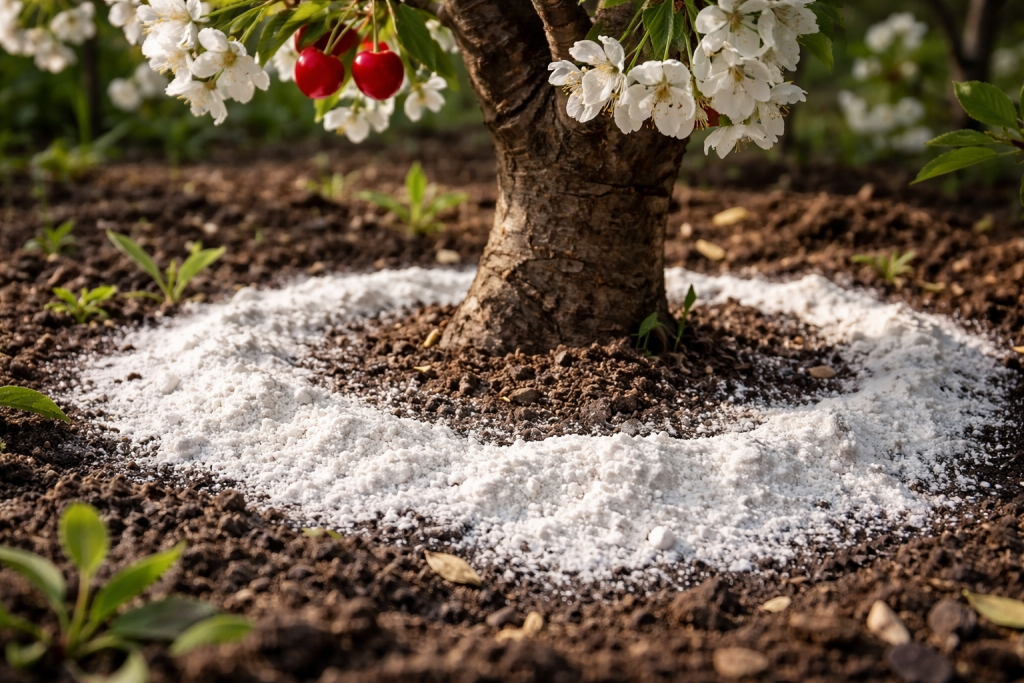 Trešnje često ispuštaju jajnike ili proizvode male kisele bobice zbog skrivenog zakiseljavanja tla oko korijena. Taj se problem lako rješava dodavanjem pravog prirodnog deoksidansa u proljeće, koji trenutno uspostavlja ravnotežu i hrani drvo potrebnim mineralima.