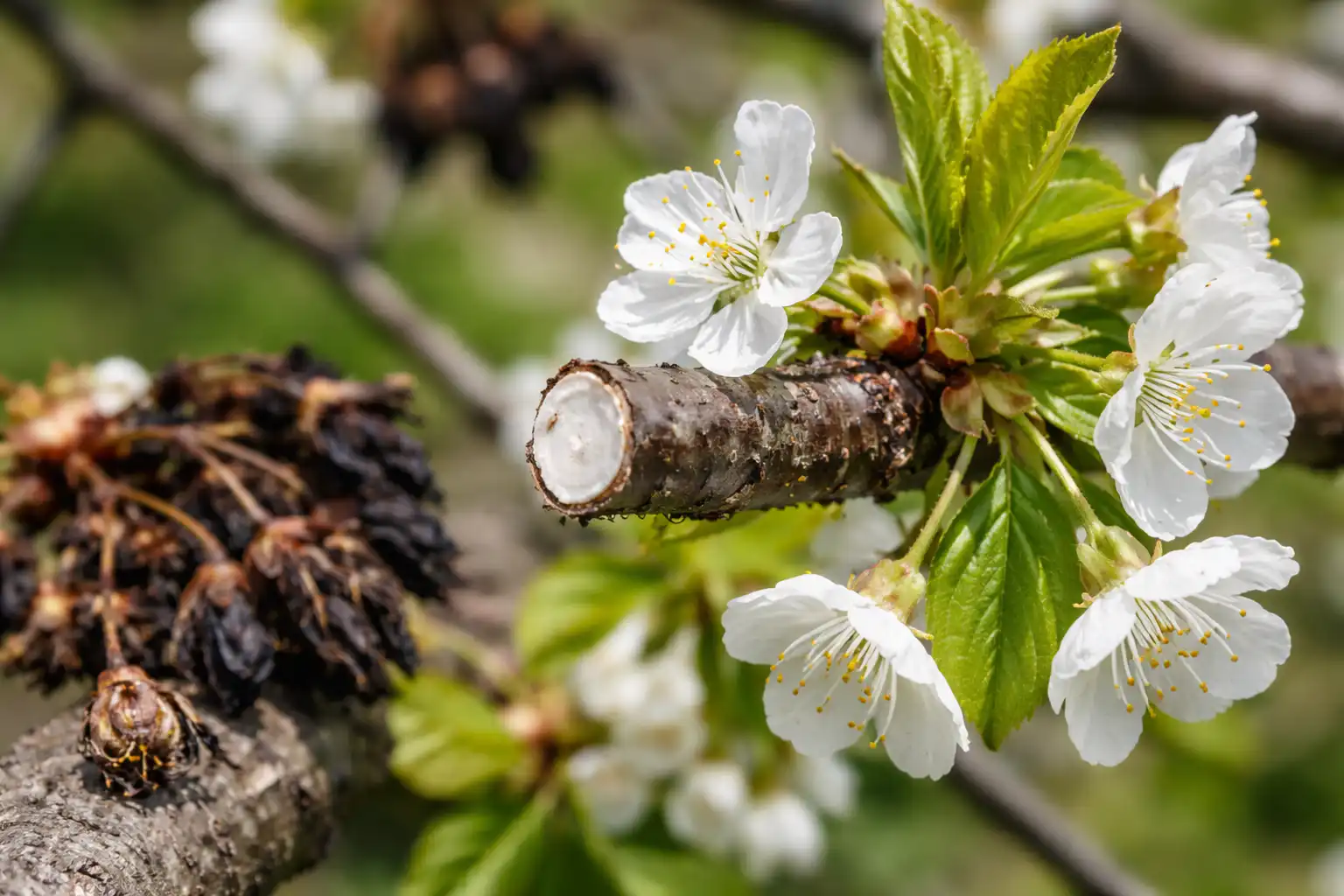 Stare, neučinkovite mladice uvijek se odlikuju vrlo tamnom korom i potpunim nedostatkom svježeg rasta.