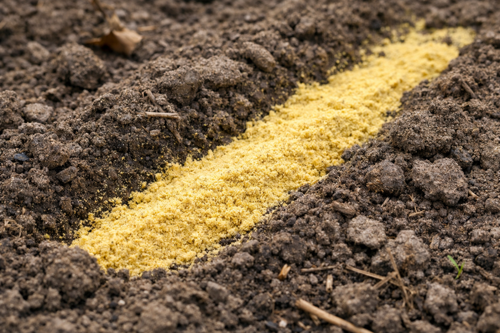 Gorušica u prahu se ulijeva izravno u rupe prilikom sadnje.