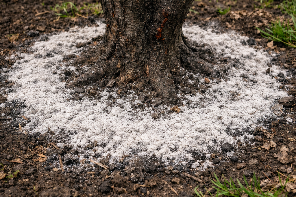 Za bolju apsorpciju minerala, raspršite proizvod duž cijelog perimetra krune, povlačeći se pola metra od samog debla. Uz rubove krune ispod zemlje nalaze se tanki usisni korijeni koji najaktivnije upijaju hranu.