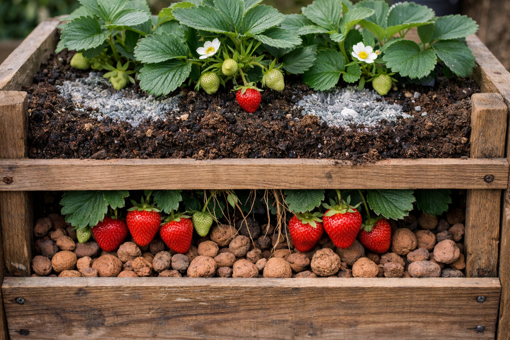 Glavna tajna kontejnerskog uzgoja je gusto malčiranje površine slamom odmah nakon sadnje. To savršeno zadržava vlagu u ograničenom volumenu tla i sprječava dozrijevanje bobica od dodirivanja vlažnog tla, potpuno sprječavajući razvoj sive truleži.