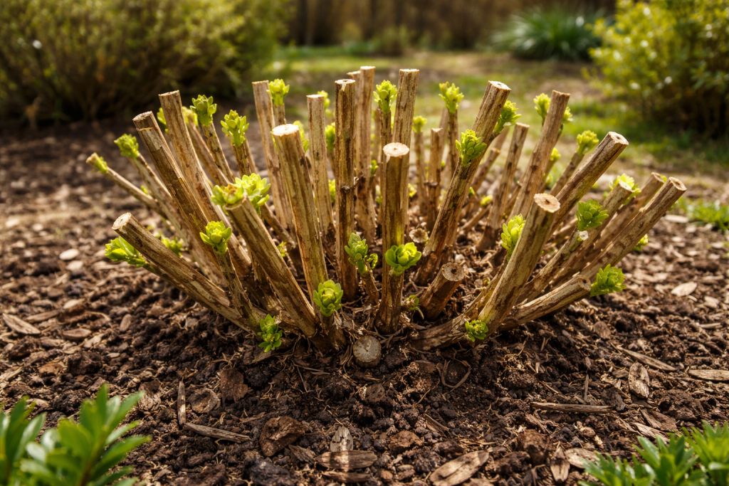 | krupnolisna | Uklanjaju se samo suhi cvatovi i mrtve grane | Na prošlogodišnjim prezimljenim granama |