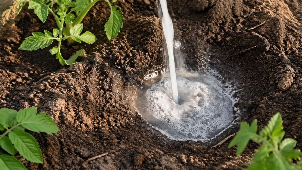 - Pripremljenu tekućinu ulijte u usmjerenom mlazu izravno u rupu