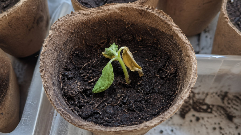 Žućenje rubova nježnih kotiledona i najnižeg lišća