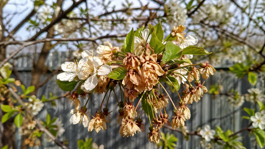 Mnogi ljudi pogrešno požutjelo lišće i smežurane grane smatraju posljedicama povratnih mrazeva. Međutim, pravi je krivac monilijalna opeklinakoju uzrokuje mikroskopska gljivica. Uzročnik prezimi u mumificiranim plodovima i zaraženom drvetu, a dolaskom proljetne topline počinje se aktivno rasipati. spore gljiva po cijelom vrtu.