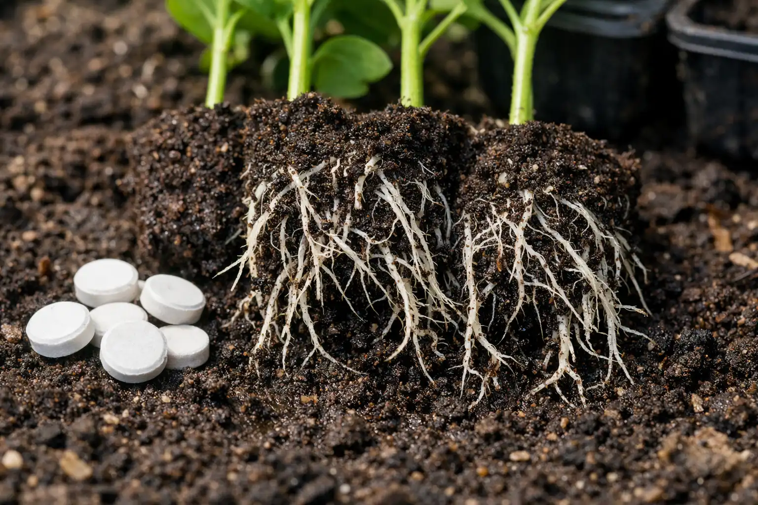 Tajna jakih biljaka otpornih na bolesti je u smanjenju ozljeda kuglice tla na minimum. Kada sadnicu izvadimo iz plastične posude, neizbježno je lomljenje mikroskopskih usisnih korijena. Korištenje ekološki prihvatljivo pakiranje potpuno rješava ovaj problem, budući da se sadnica šalje u zemlju izravno u svojoj privremenoj “kući”. Zidovi posude postupno trunu u tlu, dodatno obogaćujući tlo organskom tvari.